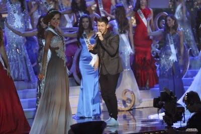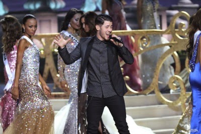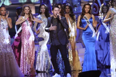 Namorado da Miss EUA Olivia Culpo, o cantor e ator Nick Jonas foi escalado para uma apresentação no Miss Universo, no domingo (25/1). Ele cantou “Chains”, “Jealous” e “Teacher” durante o desfile de gala das candidatas.